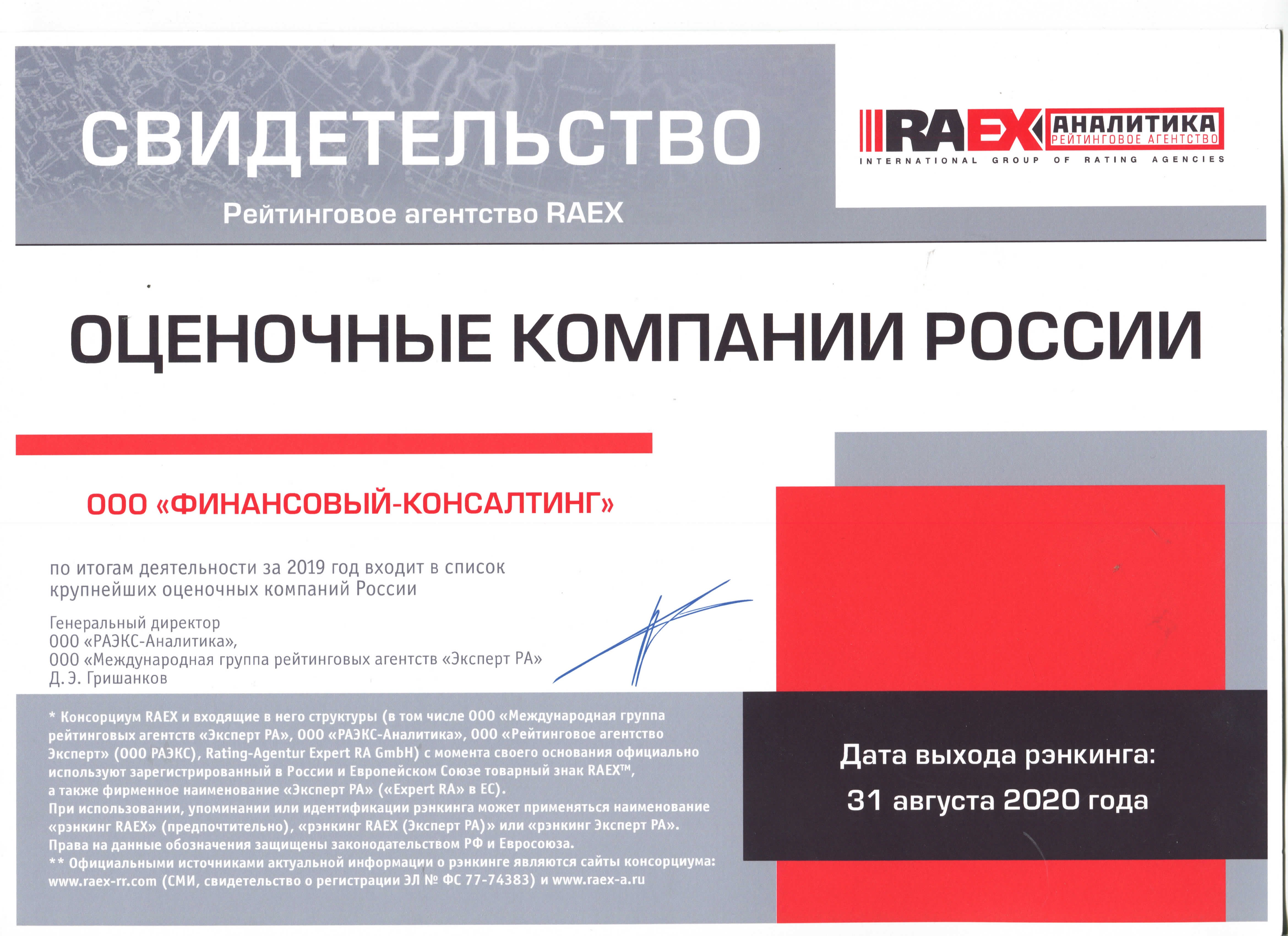 Компания «ФИНКОН ЭКСПЕРТ» признана одной из ведущих региональных компаний РФ, оказывающих оценочные и консалтинговые услуги для крупнейших российских банков, органов государственной власти, а также предприятий крупного, среднего и малого бизнеса. В 2001 году компания включена Минимуществом России в первый рейтинг крупнейших оценочных компаний