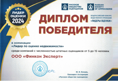По итогам рейтинга крупнейших оценочных компаний России 2025 года ООО «ФИНКОН ЭКСПЕРТ» в очередной раз вошла в число 100 крупнейших компаний в сфере оценки и консалтинга. Также по результатам общероссийского конкурса общественного признания «Лидеры оценки» ООО «ФИНКОН ЭКСПЕРТ» признана победителем в номинации «Лидер по оценке недвижимости»