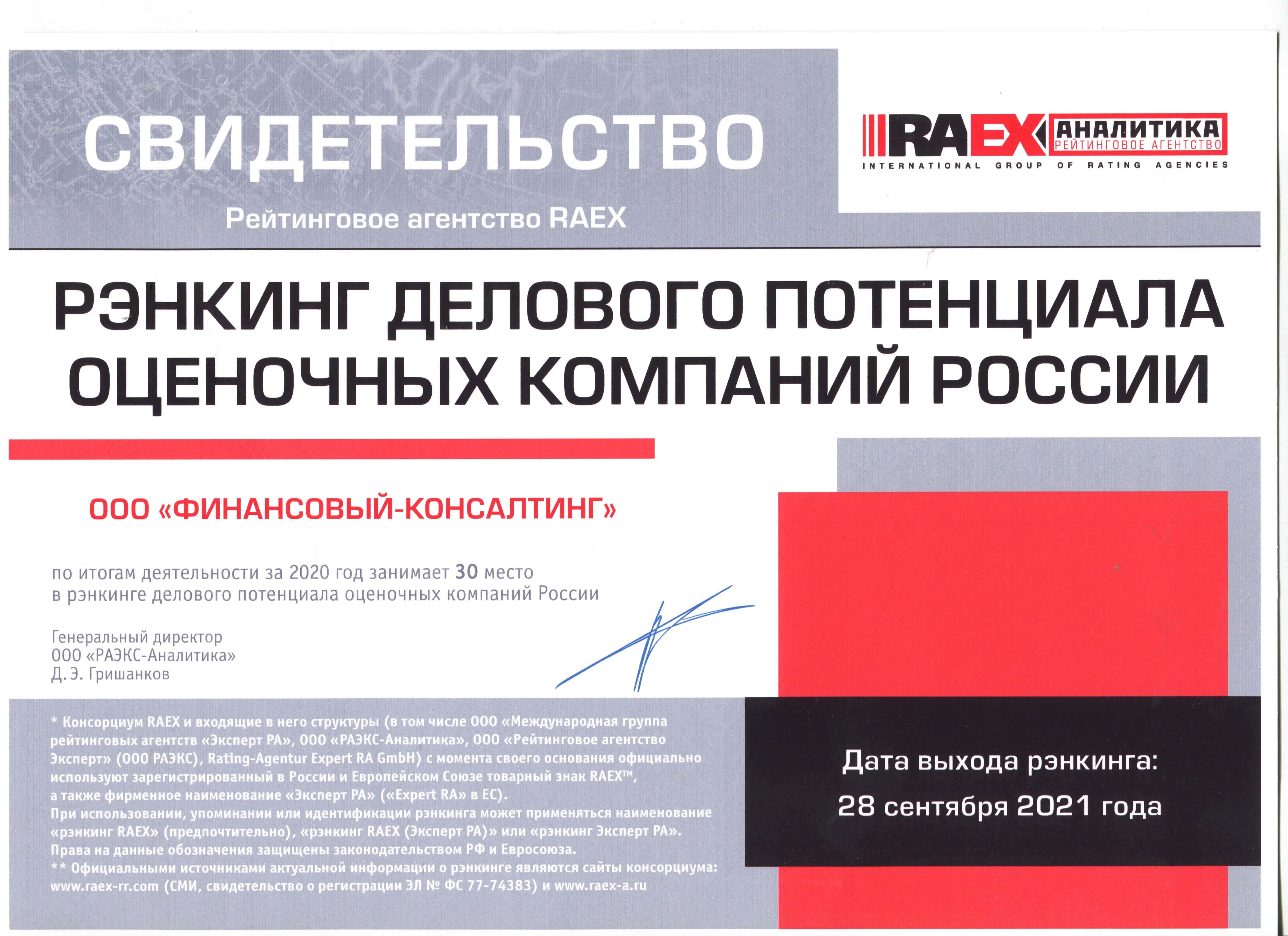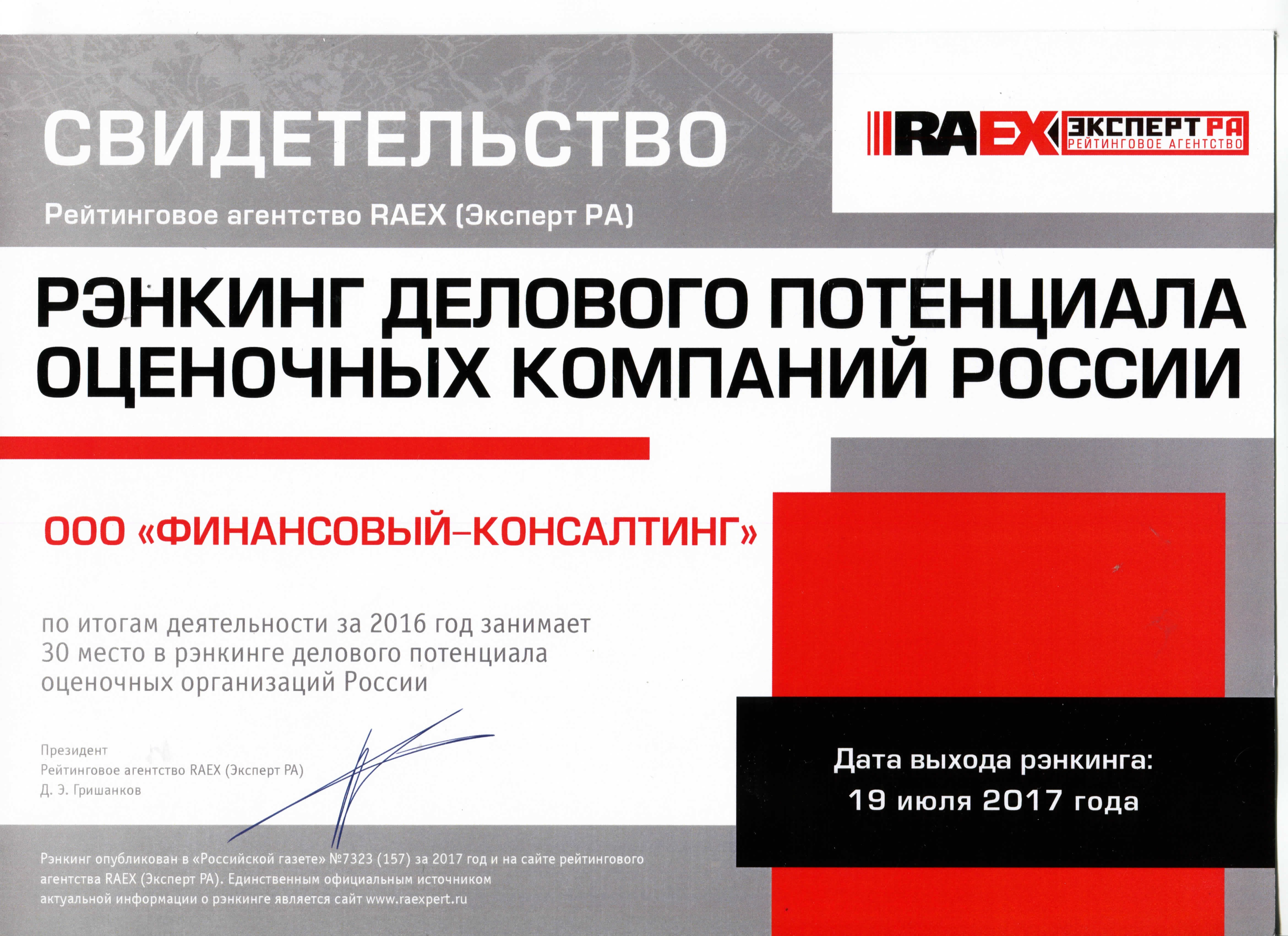 Компания «ФИНКОН ЭКСПЕРТ» признана одной из ведущих региональных компаний РФ, оказывающих оценочные и консалтинговые услуги для крупнейших российских банков, органов государственной власти, а также предприятий крупного, среднего и малого бизнеса. В 2001 году компания включена Минимуществом России в первый рейтинг крупнейших оценочных компаний